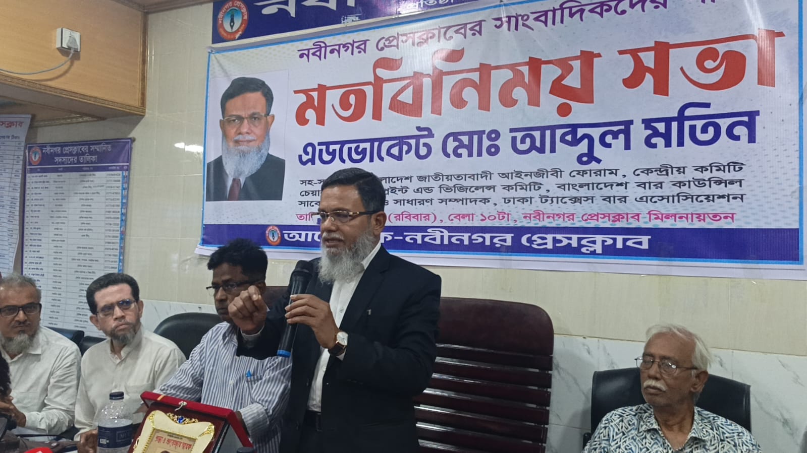 সংবাদ সম্মেলনে এডভোকেট আব্দুল মতিন বলেন, তিনি দীর্ঘদিন ধরে জাতীয়তাবাদী আদর্শে বিশ্বাসী থেকে দলকে শক্তিশালী করার জন্য কাজ করে আসছেন। তাই আগামী দ্বাদশ জাতীয় সংসদ নির্বাচনে বিএনপির মনোনয়ন পেয়ে নবীনগরের উন্নয়ন ও জনগণের অধিকার প্রতিষ্ঠায় কাজ করার অঙ্গীকার ব্যক্ত করেন।