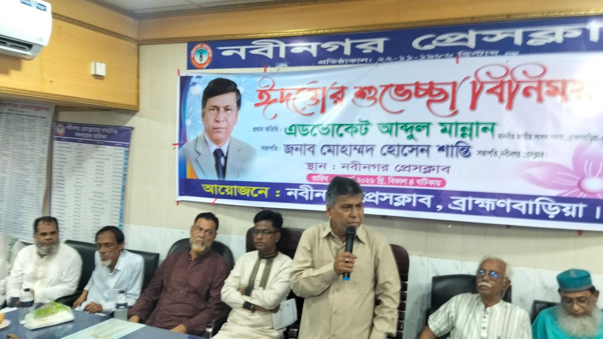 সাংবাদিক নেতা সঞ্জয় শীলের সভাপতিত্বে, এসময় বক্তব্য রাখেন,নবীনগর রিপোর্টাস ক্লাবের সভাপতি শাহিন রেজা টিটু, নবীনগর মডেল প্রেসক্লাবের সভাপতি আনোয়ার বিন খলিলুর, সফিকুল ইসলাম শরীফ, জাবেদ আহমেদ জীবন, আব্দুল্লা আল মতিন, সোহেল খান, রোহান আহমেদ, আশরাফুল হক, ফজলে রাব্বি পাপ্পু, হাজী মো. কাউছার আহমেদ, আব্দুল্লা আল মামুন, শেখ মিহাদ, খলিল পরদেশী, লিটন মিয়া (মেম্বার), সালমান জমদ্দার, সফিকুল ইসলাম শরীফ,মাজেদুল ইসলাম মন্টিসহ অন্যান্যরা।
