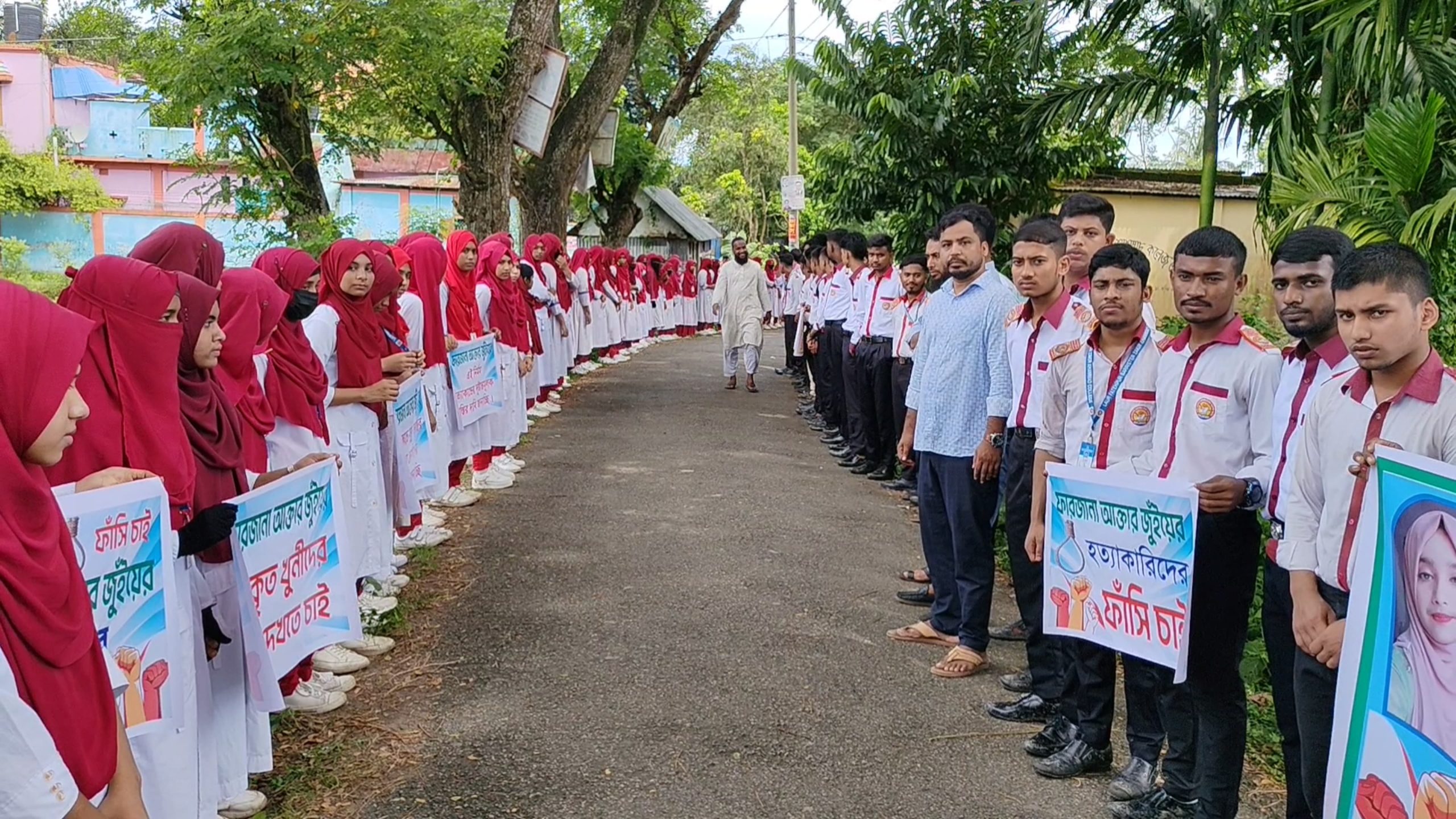 নবীনগরে শিক্ষার্থী জুঁই হত্যাকারীদের গ্রেফতার ও বিচারের দাবিতে মানববন্ধন