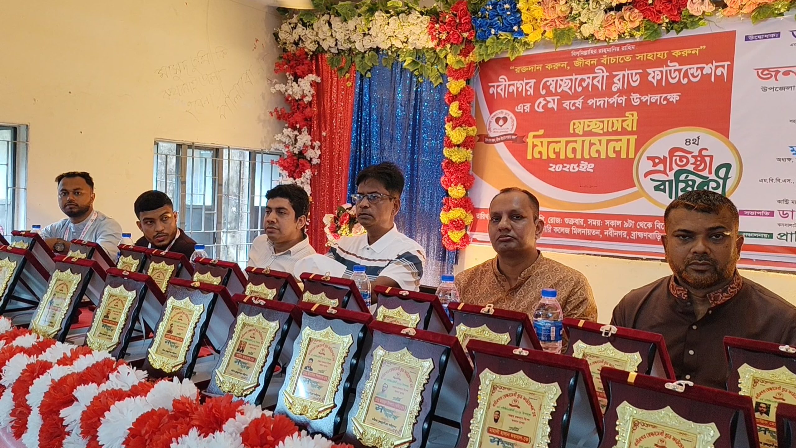 নবীনগরে স্বেচ্ছাসেবী ব্লাড ফাউন্ডেশনের ৫ম বর্ষে পদার্পণ উপলক্ষে স্বেচ্ছাসেবীদের মিলনমেলা