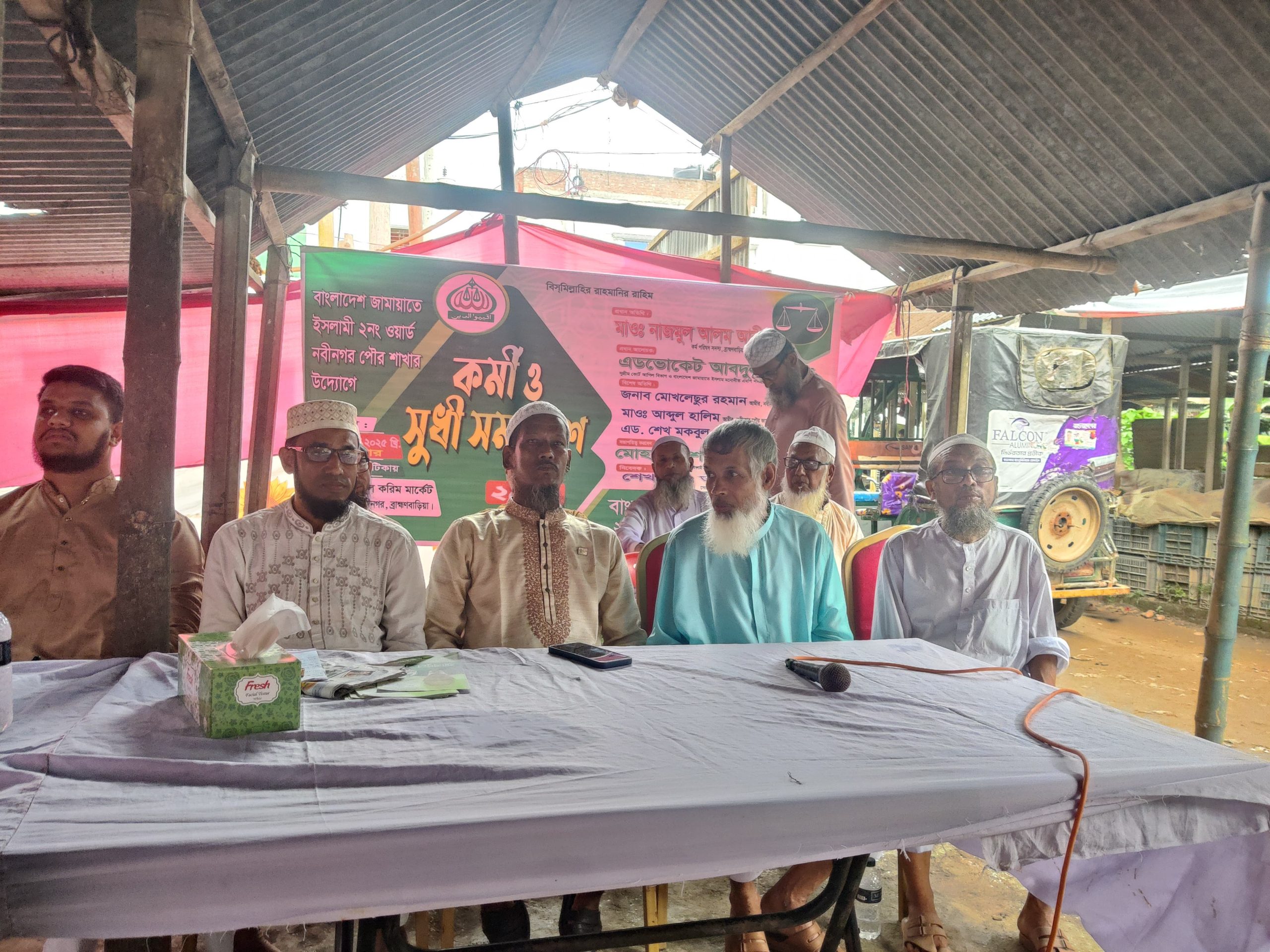 ব্রাহ্মণবাড়িয়ার নবীনগর পৌর এলাকার ২নং ওর্য়াডের ফজলুল করিম মার্কেট গতকাল শনিবার বিকালে বাংলাদেশ জামায়াতে ইসলামী পৌর শাখার উদ্যোগে কর্মী ও